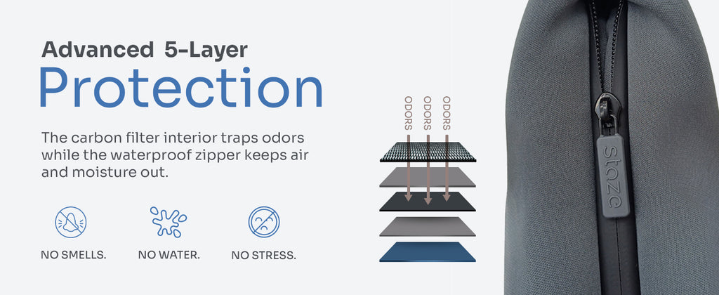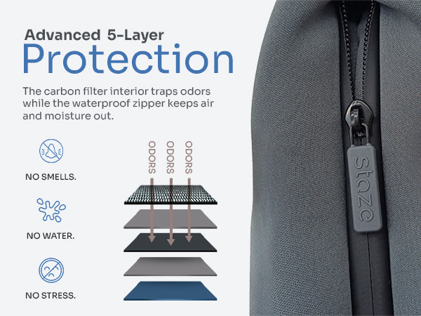 The Staze Drift Smell Proof Bag is a sleek, stylish, and versatile accessory designed to keep your essentials organized, protected, and discreet. Featuring a durable, waterproof zipper and advanced carbon filter cloth lining it effectively absorbs odors, ensuring complete privacy. Compact yet spacious, this bag effortlessly accommodates your travel essentials while maintaining a modern, streamlined design.